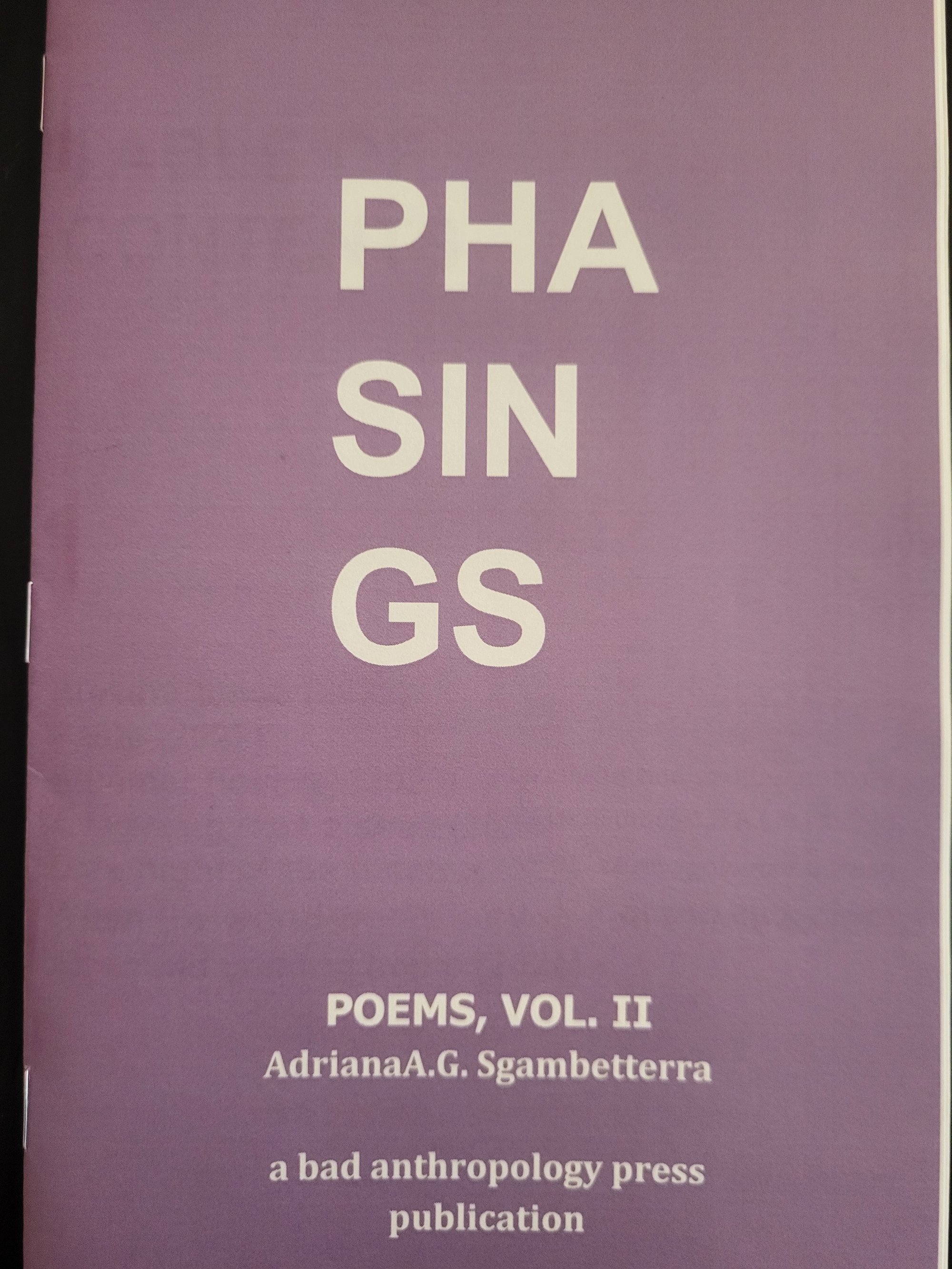 Second collected volume of poetry by Adriana A.G. Sgambetterra. Print. Please note that these are printed to order.
